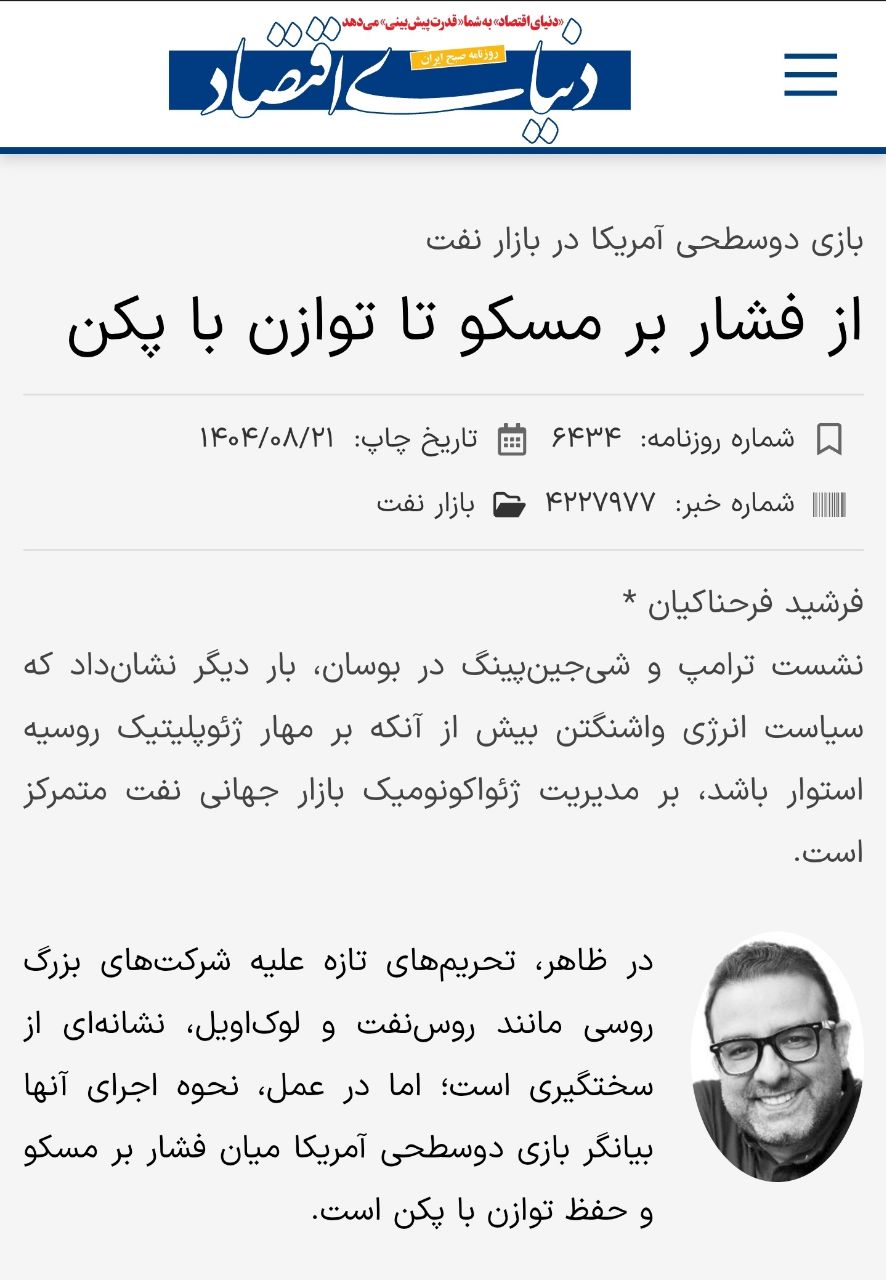 اين نوشتار در تاريخ بیستویکم آبانماه ۱۴۰۴ در روزنامۀ دنیای اقتصاد منتشر شد.