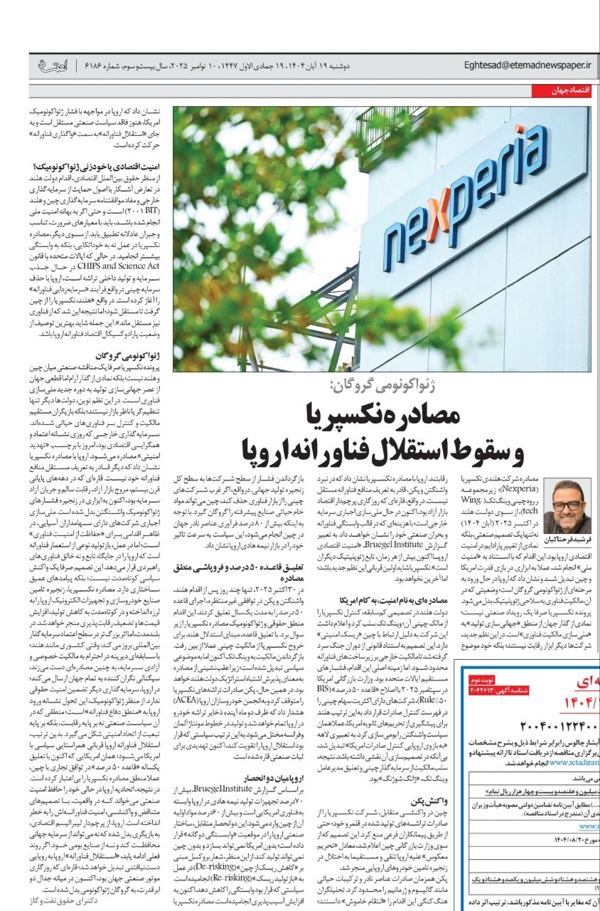 مصادرۀ نکسپریا نشان داد که اروپا در مواجهه با فشار ژئواکونومیک آمریکا، هنوز فاقد سیاست صنعتی مستقل است و بهجای «استقلال فناورانه»، به سمت «واگذاری فناورانه» حرکت کرده است.
