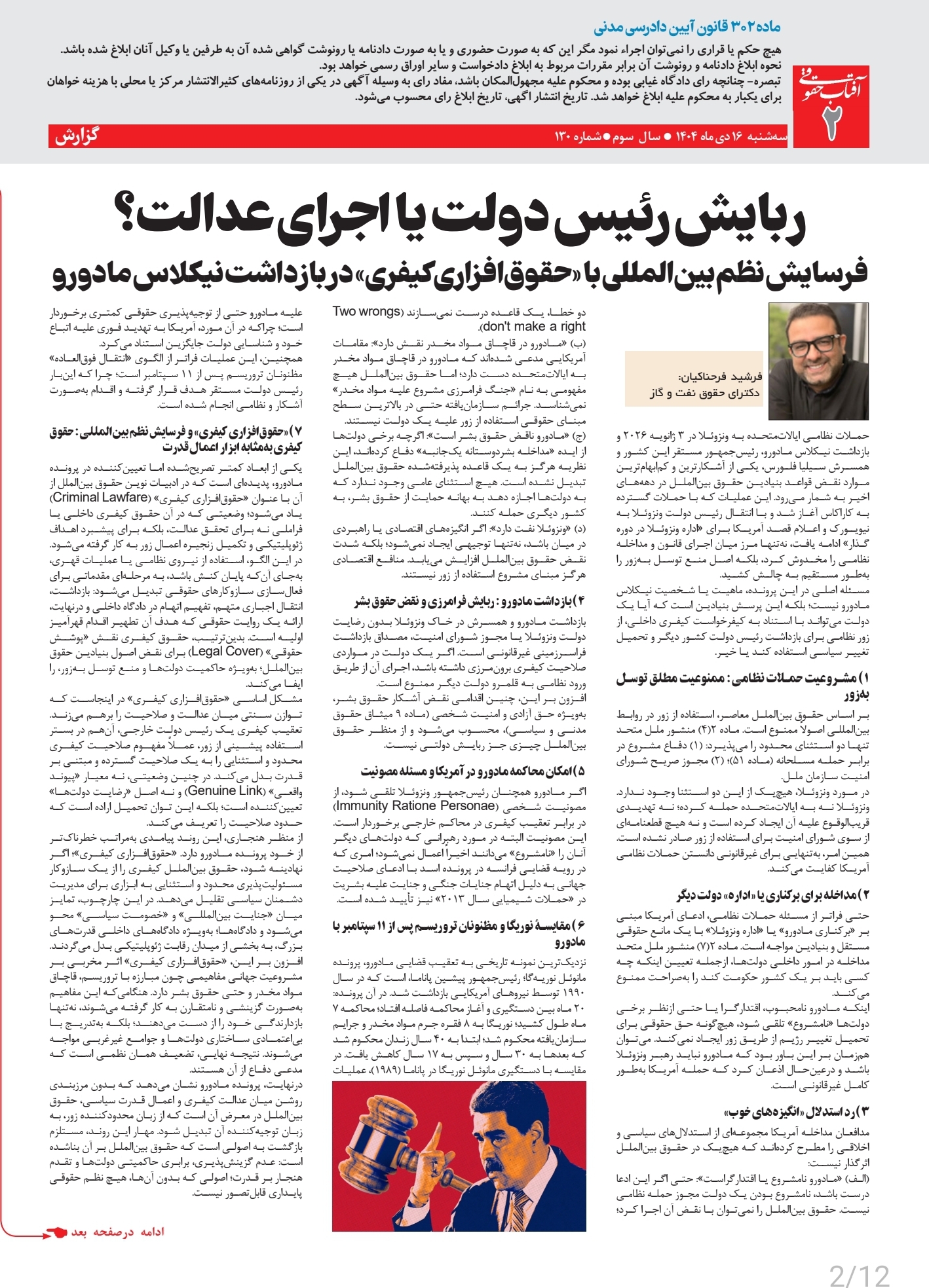 ربایش رئیس دولت یا اجرای عدالت؟