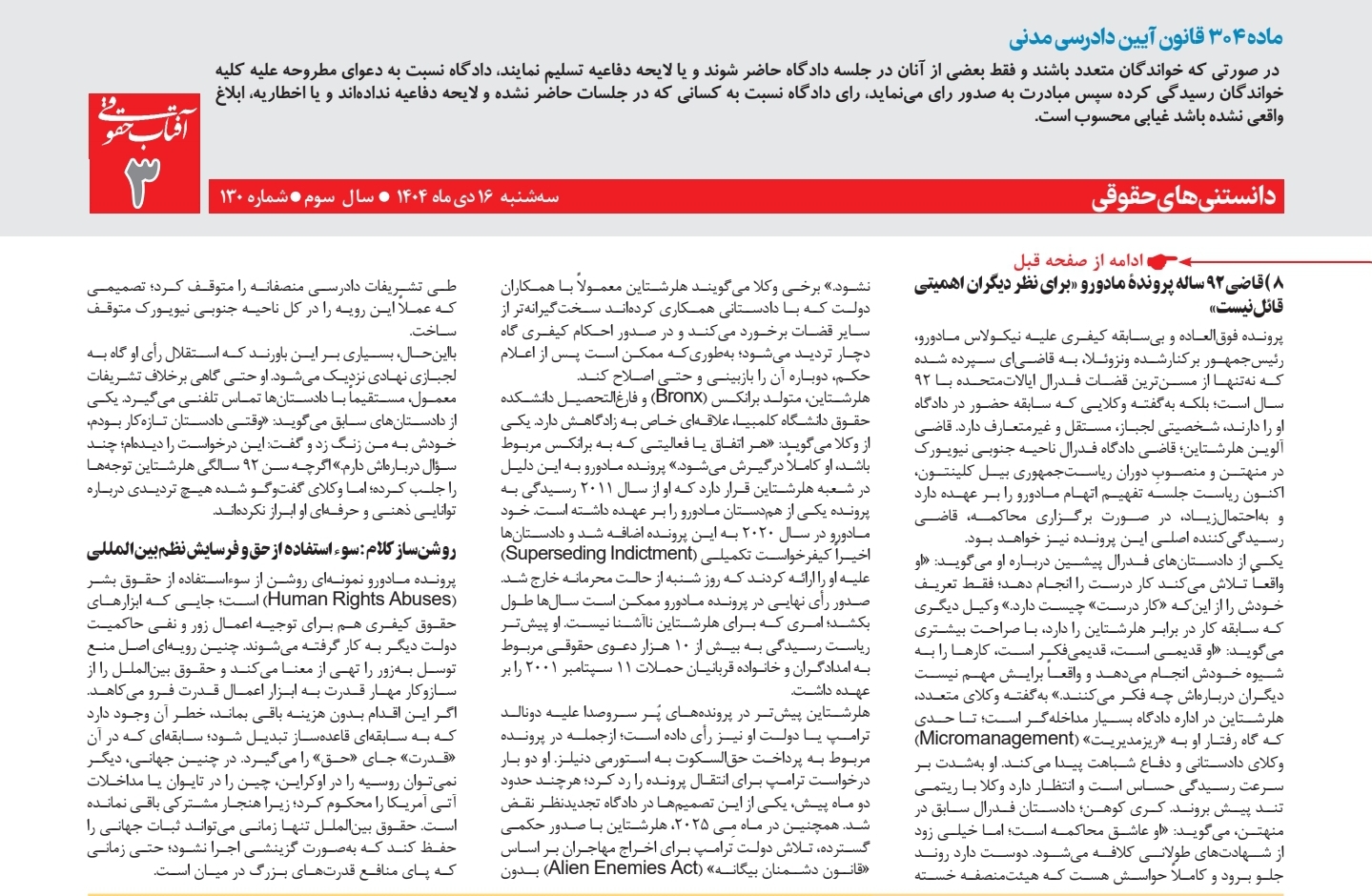 اين نوشتار در تاريخ شانزدهم دیماه ۱۴۰۴ در هفتهنامۀ آفتاب حقوقی متشر شد.