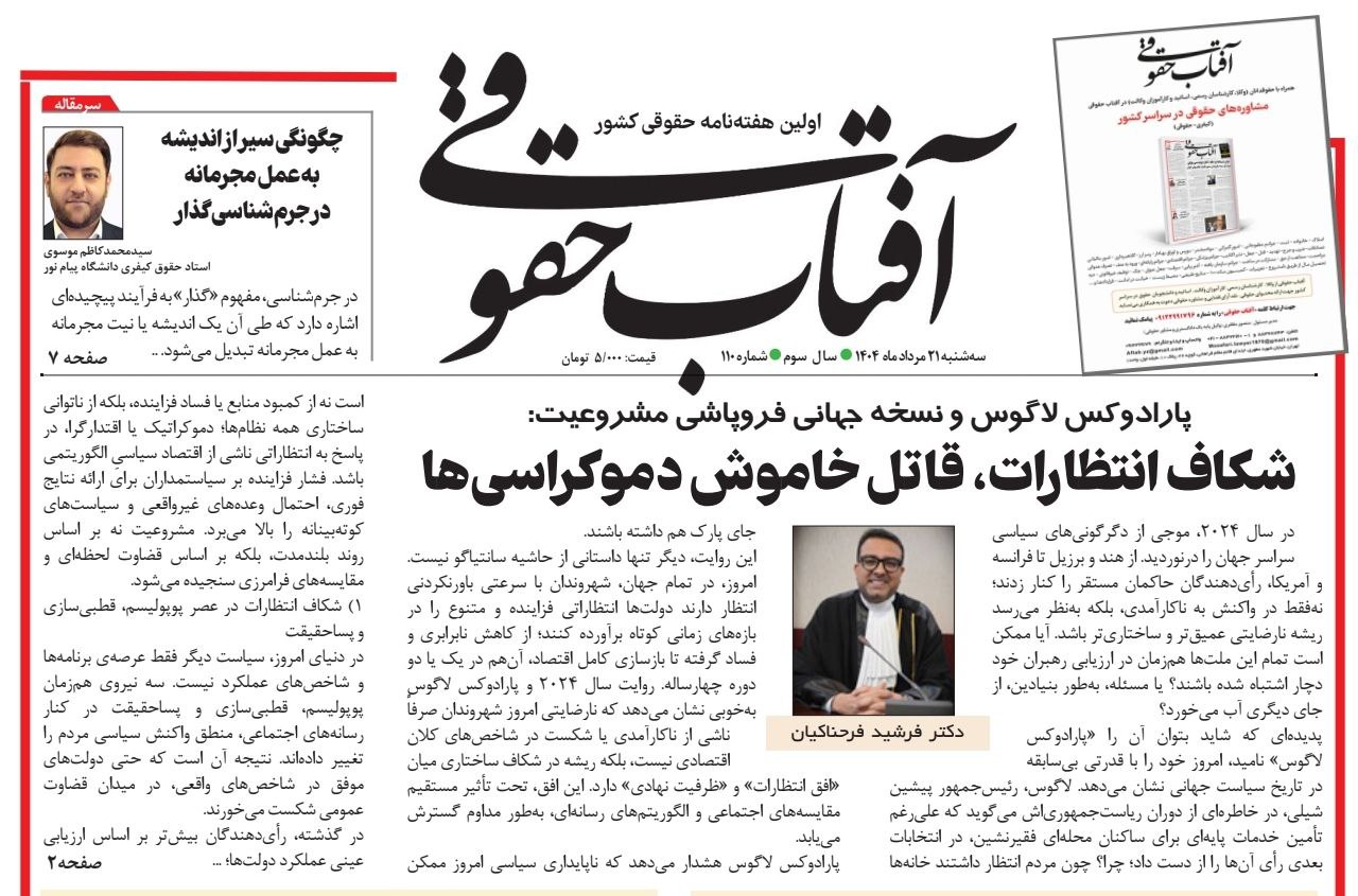 اين نوشتار در تاريخ بیستویکم مردادماه 1404 در هفتهنامۀ آفتاب حقوقی منتشر شد.