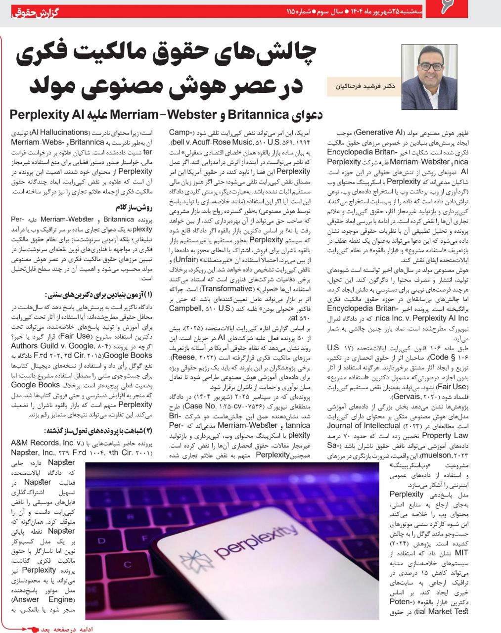 هوش مصنوعی مولد در سالهای اخیر توانسته است شیوههای تولید، انتشار و مصرف محتوا را دگرگون کند. این تحول، هرچند فرصتهای نوینی برای دسترسی به دانش ایجاد کرده، اما چالشهای بیسابقهای در حوزه حقوق مالکیت فکری برانگیخته است. پرونده اخیر Encyclopedia Britannica Inc. v. Perplexity AI Inc. که در دادگاه فدرال نیویورک مطرحشده است، نماد بارز چنین چالشی به شمار میآید.