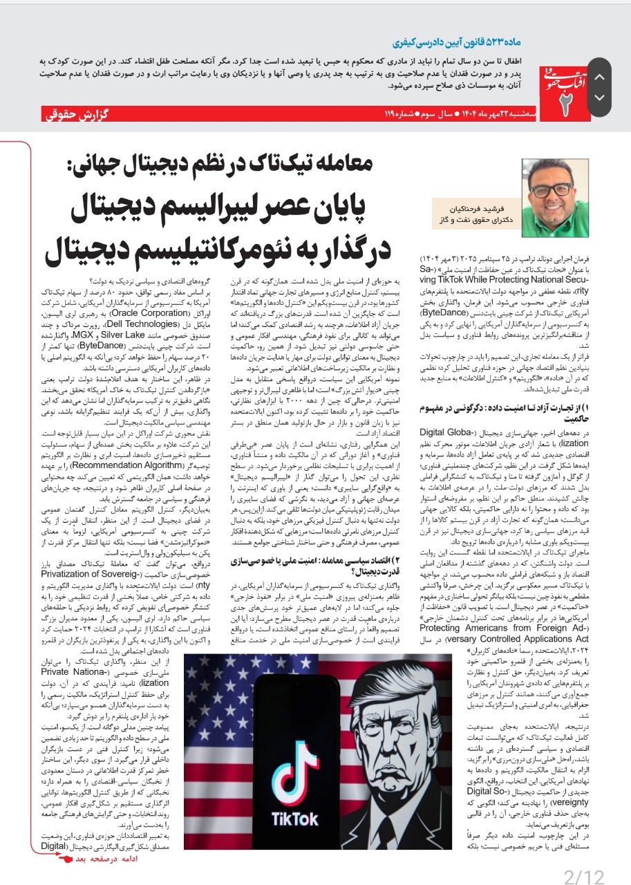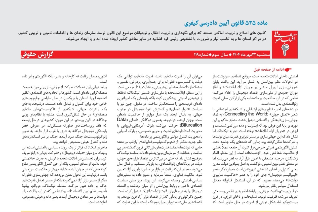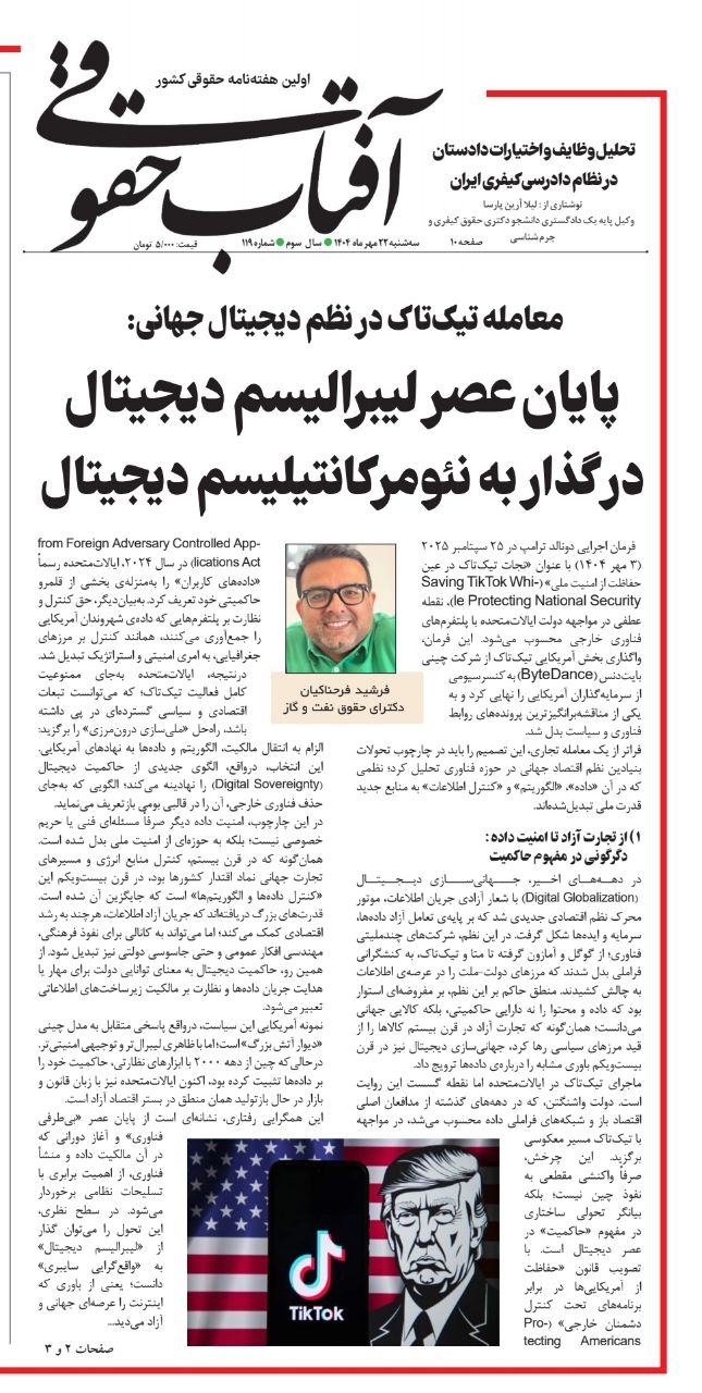 اين نوشتار در تاريخ بیستودوم مهرماه ۱۴۰۴ در هفتهنامۀ آفتاب حقوقی منتشر شد.