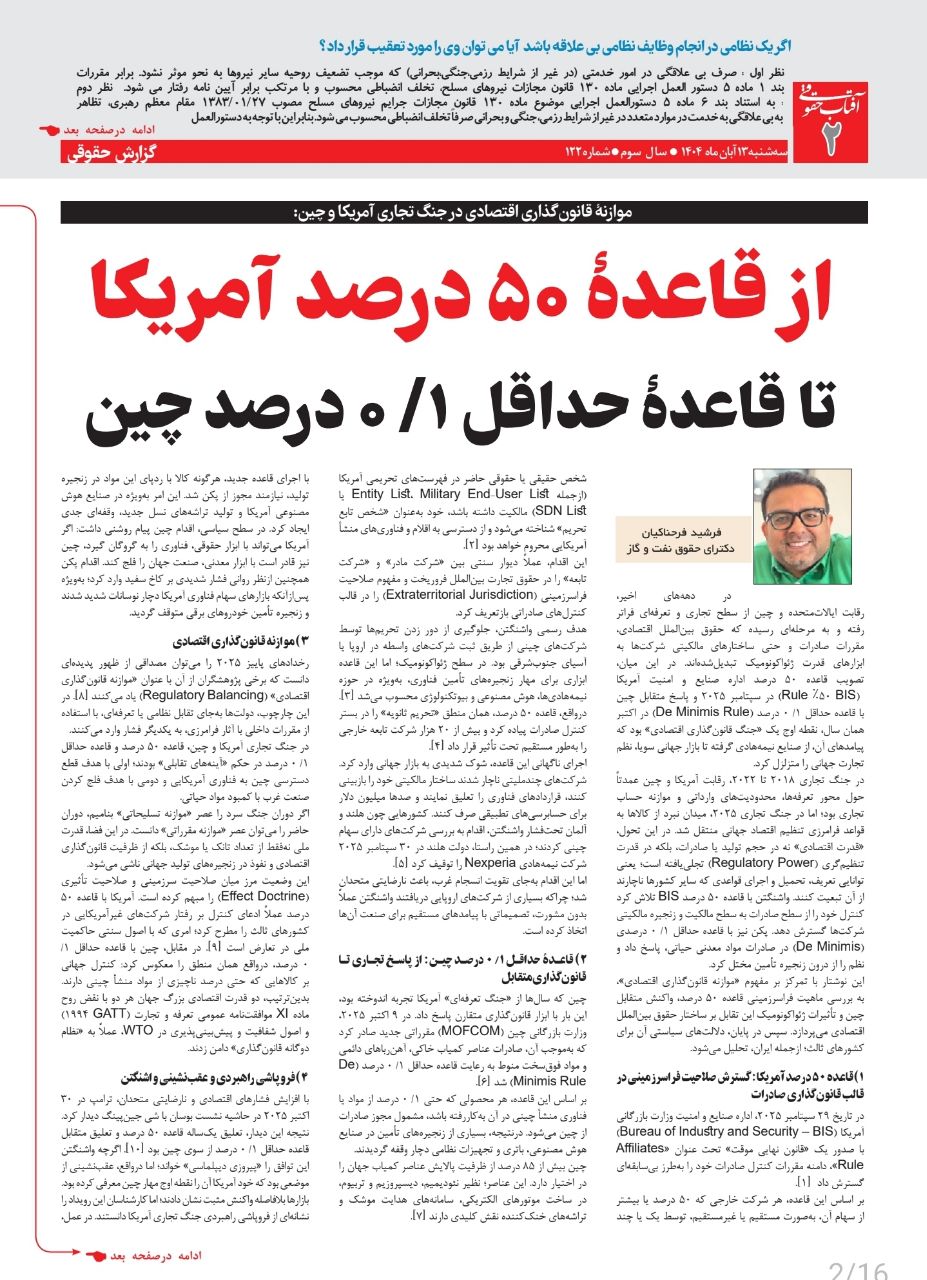اين نوشتار در تاريخ سیزدهم آبانماه ۱۴۰۴ در هفتهنامۀ آفتاب حقوقی منتشر شد.