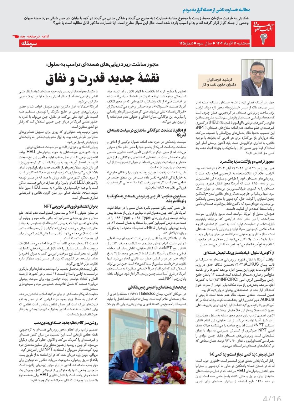 اين نوشتار در تاريخ یازدهم آذرماه ۱۴۰۴ در هفتهنامۀ آفتاب حقوقی منتشر شد.