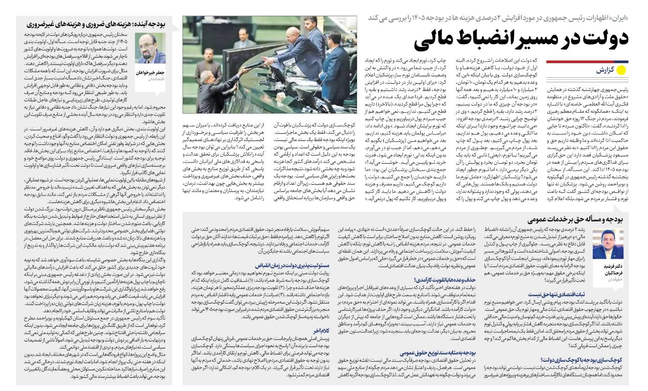 رشد دو درصدی بودجه سال ۱۴۰۵؛ که رئیسجمهور آن را نشانه «انضباط مالی» و «پرهیز از تبدیلشدن به منبع تورم» معرفی میکند، در نگاه نخست اقدامی قابل دفاع به نظر میرسد. جلوگیری از چاپ پول و کنترل کسری بودجه، اصول شناختهشده اقتصاد کلان است و بسیاری از کشورها سالهاست این مسیر را برای مهار تورم پیمودهاند. پرسش اساسی اما اینجاست: آیا کوچکسازی بودجه الزاماً به معنای تقویت حقوق اقتصادی مردم است؟ یا اینکه برخی حقوق مهم؛ بهویژه حق بر خدمات عمومی، بیصدا قربانی میشوند؟