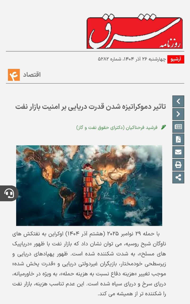 تأثیر دموکراتیزهشدن قدرت دریایی بر امنیت بازار نفت: